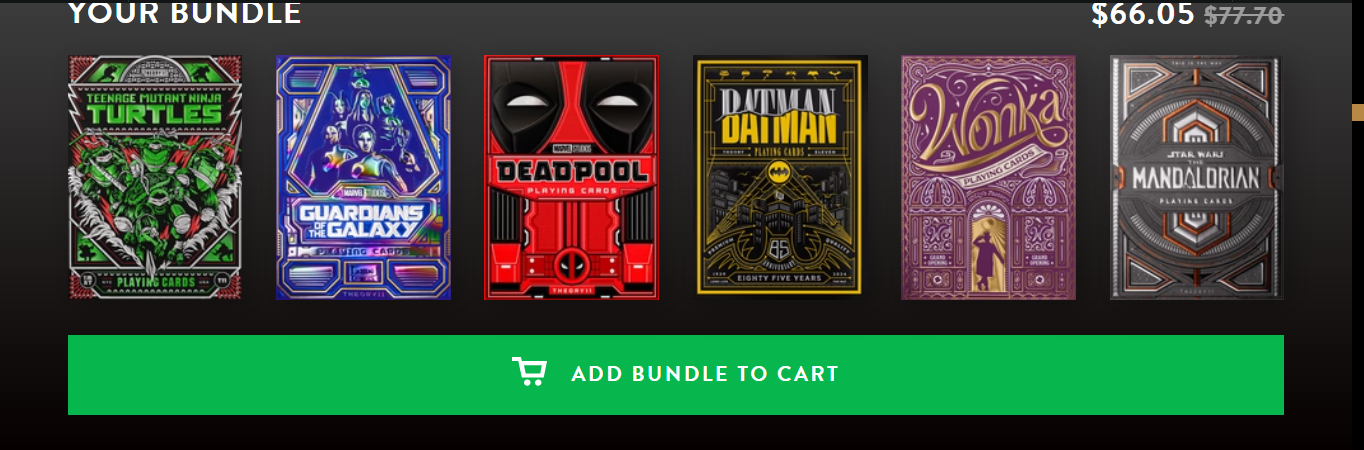 Create your very own 6 deck set of theory11 decks on our Bundle & Save page, snap a screenshot of it, and post the image in response to THIS forum thread by no later than 11:00pm EST tomorrow, Sunday, February 23rd.
