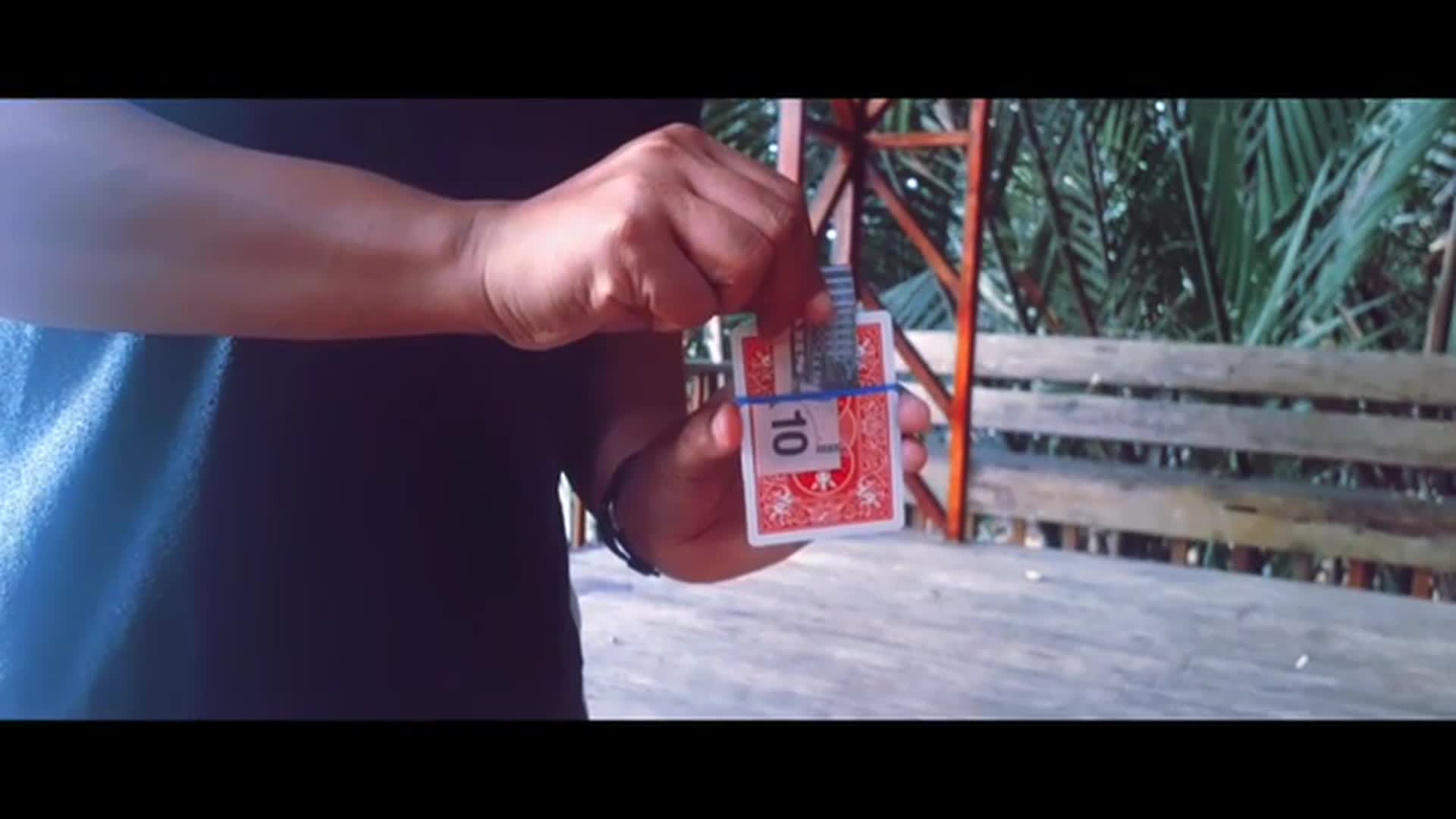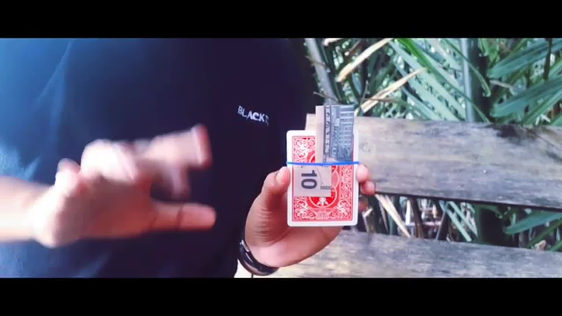 A bill is tied to a playing card and slowly you make it zig zag. Then in the blink of the eye, the bill is intact again.