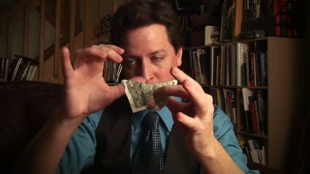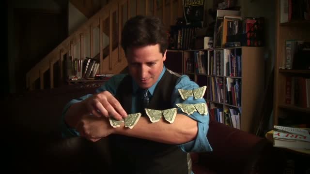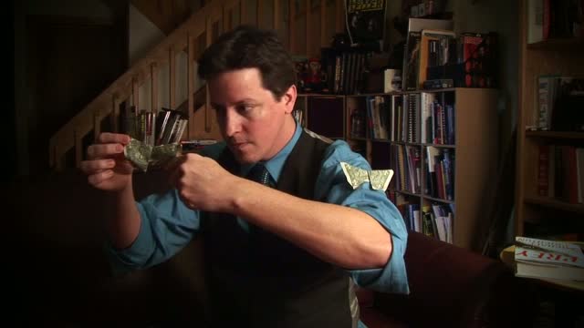 Borrow a bill from a spectator and instantly and openly transform it into an origami butterfly. You place it on your shoulder and then snatch several more from thin air producing a swarm of butterflies!