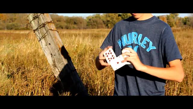 This cut begins with twist from a different grip, and goes into a rotation of a single card and spin of a packet. The single card is brought back down to the wrist, while executing another spin with the packet and a Charlier Cut with the left hand. The single card is brought onto the back of the right hand, and spun in the air onto the pack. This cut is short, but sweet and easy to do. The aerial at the end inspired the name "Aura", as it means "air" or "breeze" in Latin.