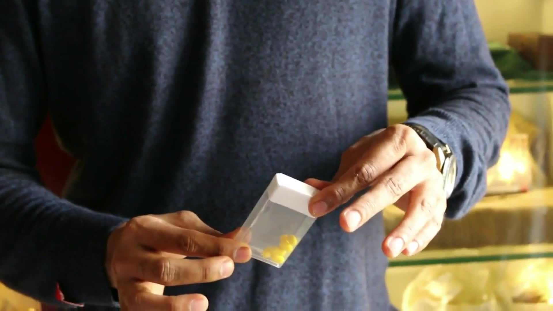 Visually fill an empty tic tac box with mints out of thin air like the misers dream.